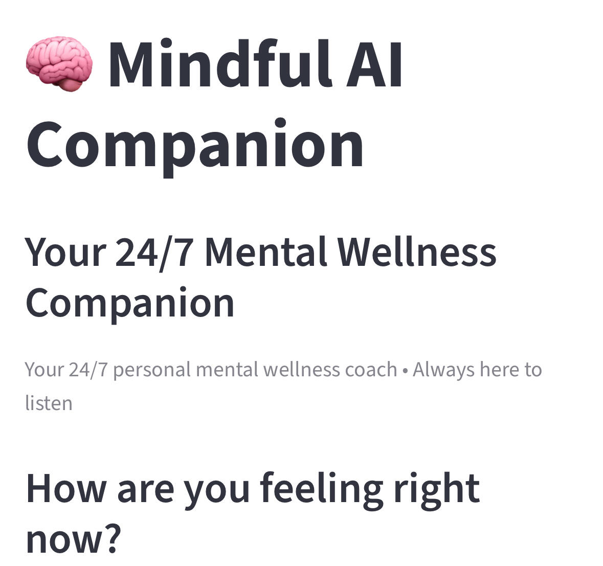 Free 24/7 support, mood tracking, coping tools & mindfulness exercises. Not a replacement for professional therapy.